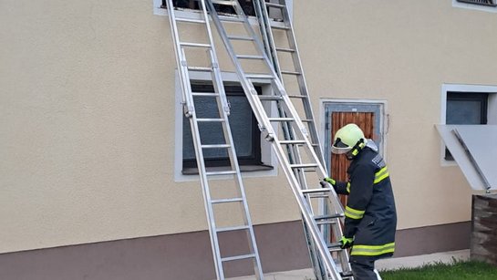 Station 2 war eine verunfallte Person im Dachbereich → diese musste mit Tragehilfen und Leitern aus der Notlage geborgen werden. Übungsziel war es, möglichst schonende Rettungsmaßnahmen zu setzen.